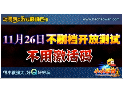 为了感谢广大动漫粉丝和玩家们的热情支持,《小小忍者》官方正式宣布:《小小忍者》不删档开放测试11月26日正式开启!不再需要激活码,所有喜爱《小小忍者》的动漫粉丝和玩家都可以进入游戏,与我们一起去冒险!