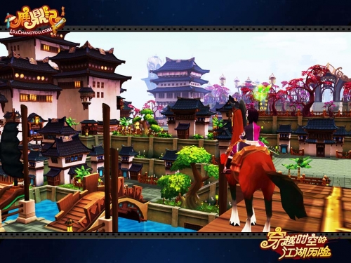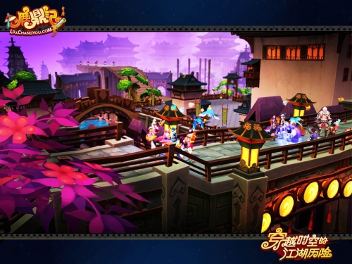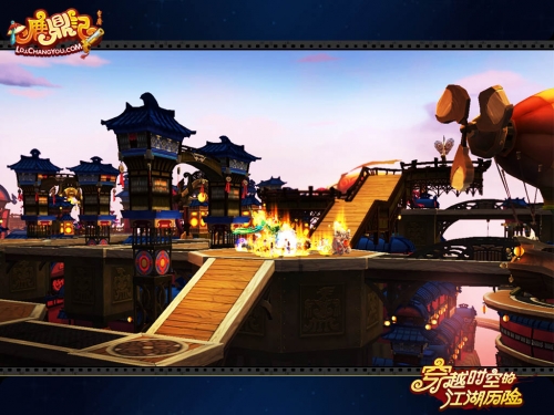 平安城中式建筑群鸟瞰 【联系中原世界和外域世界的重要交通枢纽】 作为多个服务器共享的龙掘之境,其本身的空间结构就非常特殊。平安城以其独特的地理位置优势,占据着中原世界和外域世界的时空间隙。平安城不仅是迈入龙掘之境后的第一个场景,更是开启神秘外域的“大门”。城中享有“冒险者天堂”美誉的自由广场,将汇聚各个服务器的探索者,提供互切磋交流和任务外包的机遇。 完善的空中交通是平安城的独有特色,城中架设的蔚然空港是核心交通枢纽,你可以在这里乘坐飞艇快速前往你的专属城市。而连接平安城与怀安桥的怀安门,将是勇气和机遇的屏障,一门之外将有无数的资源和机遇吸引着来自各服的玩家。